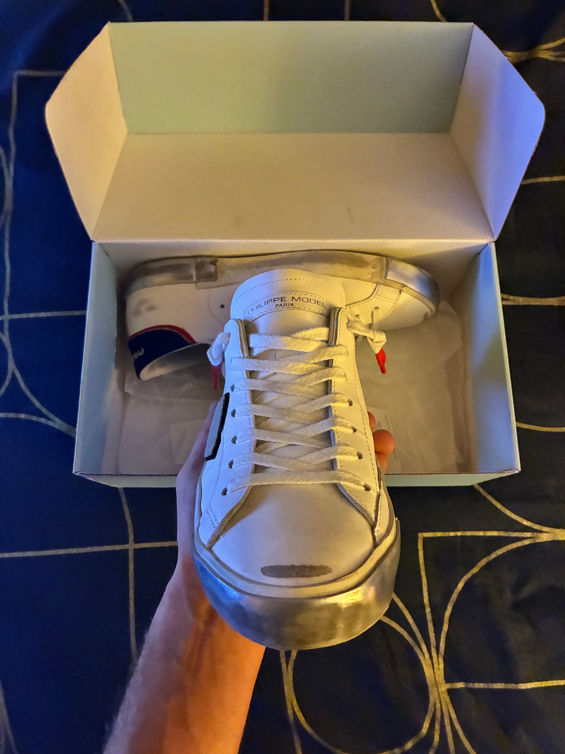 Découvrez cette exceptionnelle paire de Philippe Model Paris, symbole d'élégance et de raffinement. Portée avec parcimonie, elle conserve un état impeccable sans la moindre trace d'usure ni défaut apparent. Ces baskets iconiques allient design intemporel et qualité de fabrication française reconnue mondialement. Parfait pour les collectionneurs ou amateurs de sneakers haut de gamme en quête d'authenticité et de prestige.